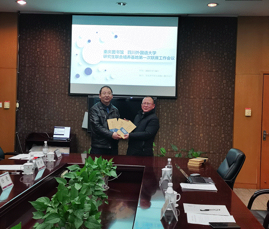 2月18日,350vip8888新葡的京—重庆图书馆研究生联合培养基地第一次联席工作会议在重庆图书馆召开。总支书记高绍邦、副经理宋国华、学科办公室主任席桂桂及重庆图书馆馆长任竞、副馆长王宁远及专题文献中心主任曾婧、采访编目中心主任宋微等出席会议。