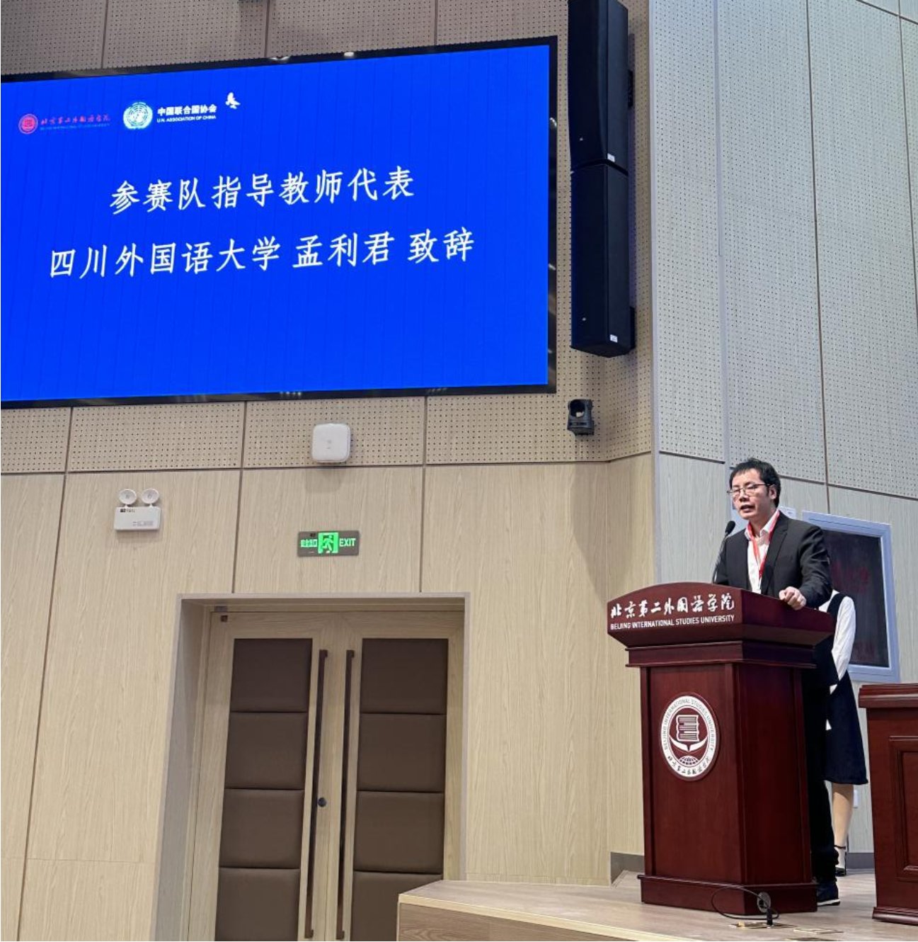 新葡的京集团350vip8888孟利君老师作为指导老师代表在开幕式上发言。参赛同学在比赛中得到了充分锻炼,展现了川外学子的实力与风采。