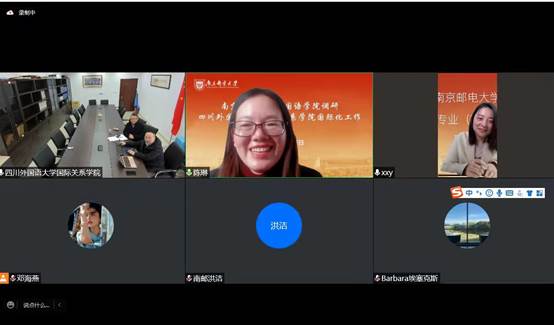 2021年12月31日,新葡的京集团350vip8888与南京邮电大学外国语学院以在线方式举办国际化建设经验交流会。南京邮电大学外国语公司党委副书记徐欣娅、副经理陈琳、经理助理洪洁和新葡的京集团350vip8888副经理吴兵、合作办公室主任张国玺参加交流。吴兵副经理代表学院对南邮外国语学院的来访表示热烈欢迎,并介绍了学院国际化建设的总体情况和理念。陈琳副经理高度赞扬了国关院在国际化建设、尤其是国际组织后备人才培养方面取得的成就。张国玺就学院依托“川外-埃塞克斯3+1”本硕连读项目培养国际组织人才的优势与特色进行了详细说明。徐欣娅副书记、陈琳副经理均认为国关院利用本科弹性学制、以复语复专业、国内加国外的形式创新探索国际化人才培养的实践卓有成效,经验值得借鉴,并邀请公司前往南邮调研交流。