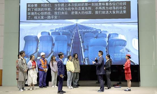 第七个节目是由翻译学院2020级白小璐等同学带来的作品《五星红旗迎风飘扬》,从一对在海外求学的重庆职工情侣的视角,展现了中国公民在外受到财产侵害、新冠疫情影响以及战争影响时,我国领事官员所付出的努力与帮助。通过情景剧的演绎,生动展示了中国公民对“祖国在我身后”这一理念的认同。